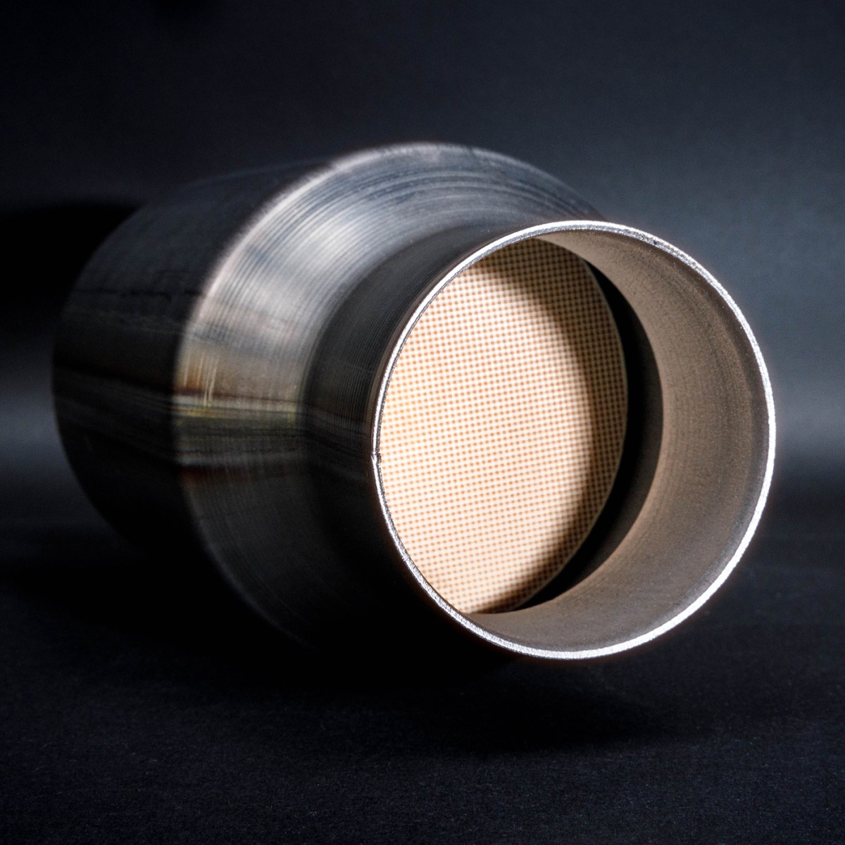 Inserts (Patent #5,173,576): Another patented technology dated back to the early 90’s. Designed to minimize drone / “hollow” noise common in straight through mufflers and absorb high pitch frequencies, producing a unique deep tone while maintaining inertia. Provides excellent low to mid-range torque and a signature high RPM note. The baffles are wrapped with stainless mat then fiberglass packing to extended packing life. Muffler is finished with a high-flow billet end cap, tapered on the inside for optimal flow and sound. Catalytic Converter in inlet of muffler.