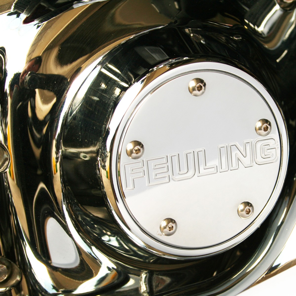 Dress your engine in style with a FEULING® points cover, machined from billet 6061 aluminum, bolts onto the factory cam cover, includes new stainless steel button head fasteners. Available in select finishes and logos, made in the U.S.A.