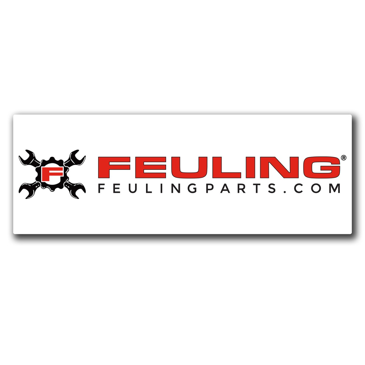 White high quality cloth banner with FEULING corporate logo featuring loops at each corner for easy mounting