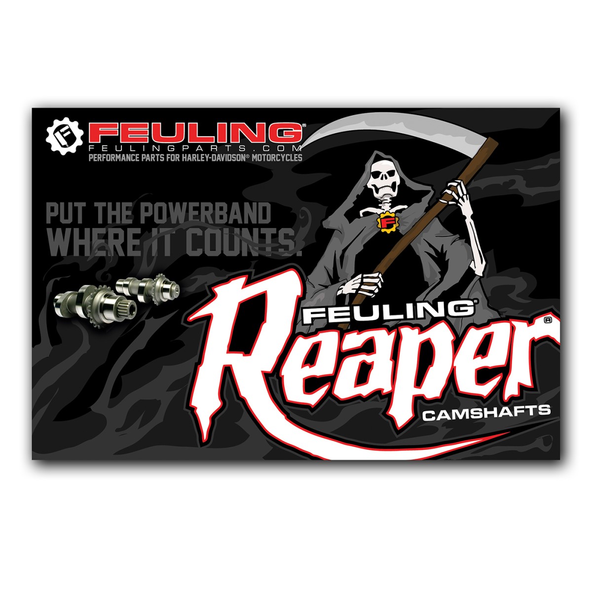 Black “REAPER” banner featuring loops at corners for easy mounting