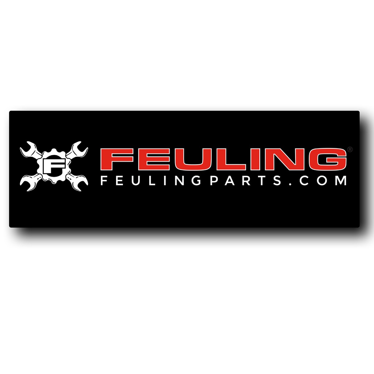 Black high quality cloth banner with FEULING corporate logo featuring loops at corners for easy mounting