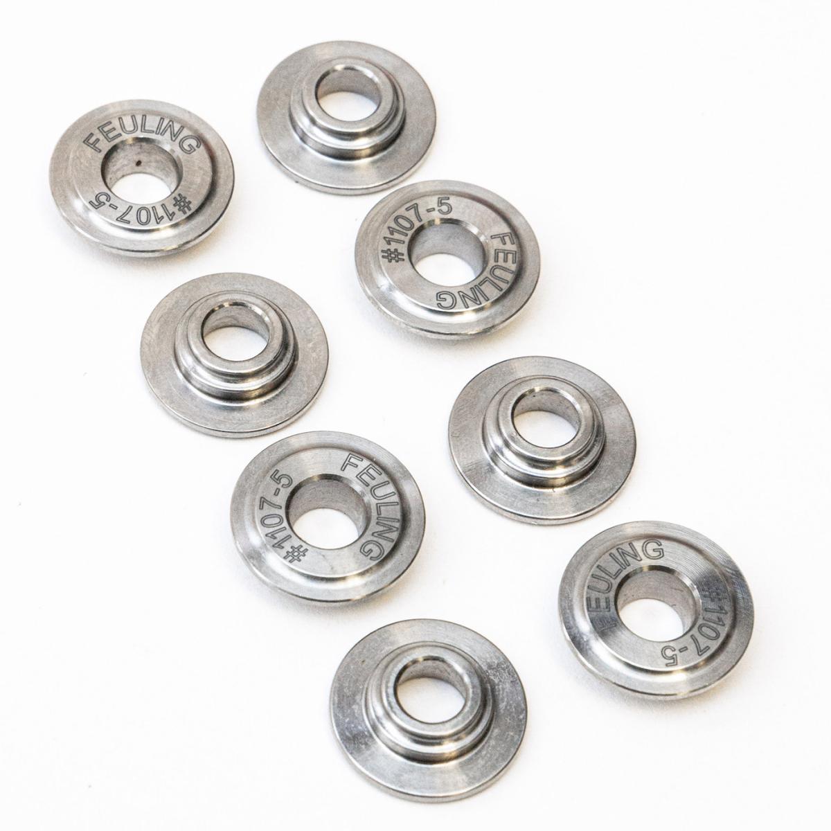 Ti retainers fit Feuling Beehive Valvespring spring kit #1107 and or the factory and SE M8 valvesprings, stock height retainers (Qty. 8)