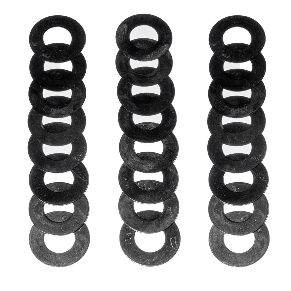 Set your valve spring open height to match your camshaft lifts for optimum valve-train stability and performance. Quality machined valve spring seat shims in 3 thicknesses, 0.060, 0.030, 0.015 with outside 1.200 Diameter and inner 0.570 diameter. Quantity 8 of each thickness