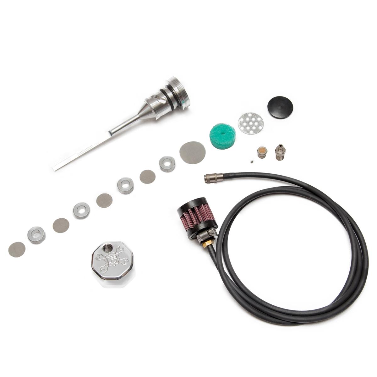 OPTION 2.) Quick disconnect coupler fitting with rubber hose and filter element. This option will run any excessive oil misting/residue through the line and into the filter element. However this option does requires disconnecting the fitting in order to check the oil. This is Feulings preferred option as it breaths more than option 1.