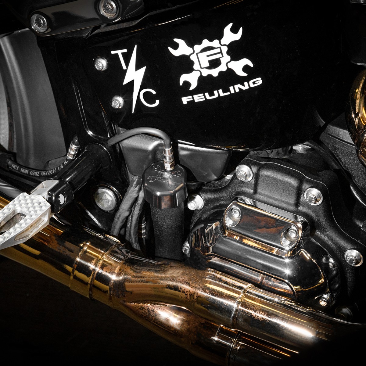 NOTE: Our in house testing shows venting the air cleaner to atmosphere may be problematic resulting in oil carry over/misting out of the breathers. When air filter venting is accompanied with the use of oil tank venting such as the Feuling vented dipstick and or a vented transmission top cover the oil carry over/misting can be increased.