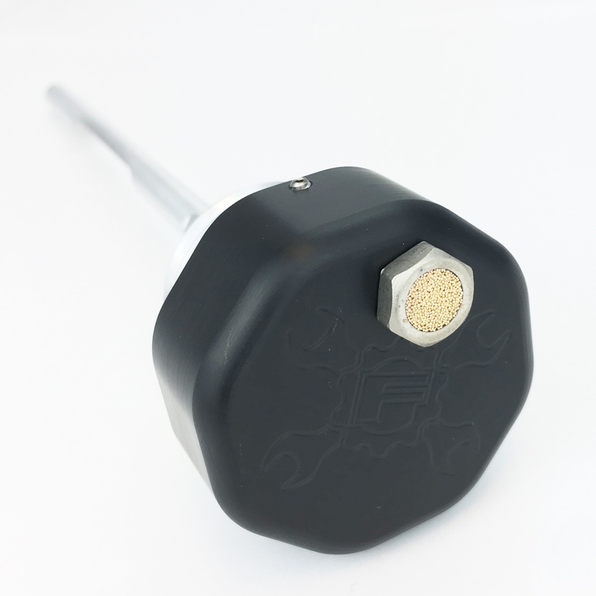 The FEULING® billet dipsticks vent/breathe excessive crank case pressure from the oil tank through a PCV style breather, consisting of an oil separator system, perforated disc, replaceable filter element and umbrella flapper valve. Feuling vented dipsticks screw into the factory oil fill spout as a stock replacement part. These breathing dipsticks remove unwanted build-up of blow by pressure in the oil tank.