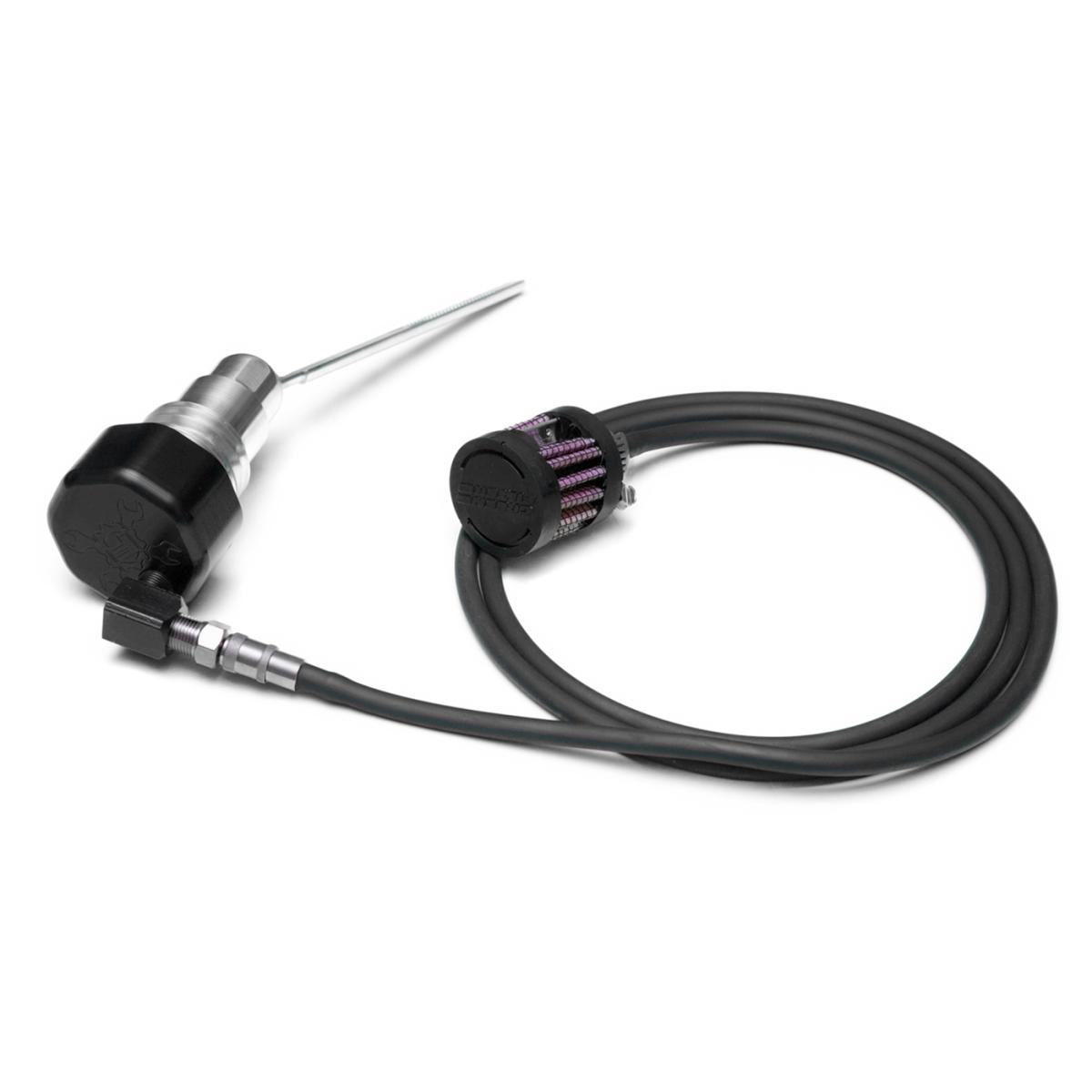 The FEULING billet dipsticks vent/breathe excessive crank case pressure from the oil tank through a PCV style breather, consisting of an oil separator system, perforated disc, replaceable filter element and umbrella flapper valve. Feuling vented dipsticks screw into the factory oil fill spout as a stock replacement part. These breathing dipsticks remove unwanted build-up of blow by pressure in the oil tank.