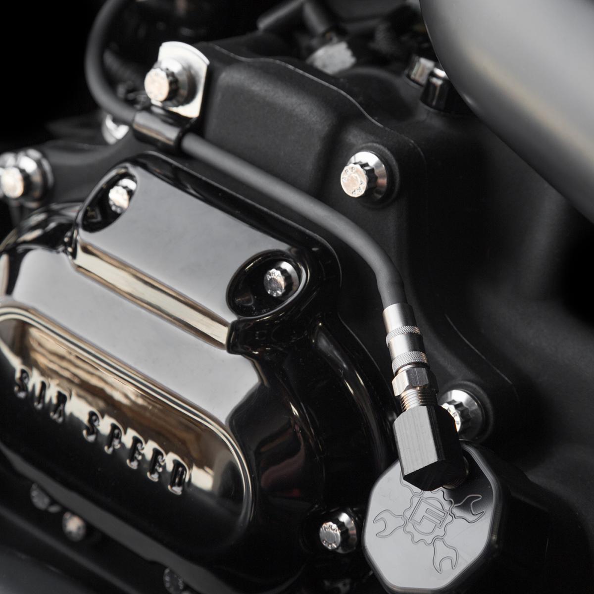 NOTE: Our in house testing shows venting the air cleaner to atmosphere may be problematic resulting in oil carry over/misting out of the breathers. When air filter venting is accompanied with the use of oil tank venting such as the Feuling vented dipstick and or a vented transmission top cover the oil carry over/misting can be increased.