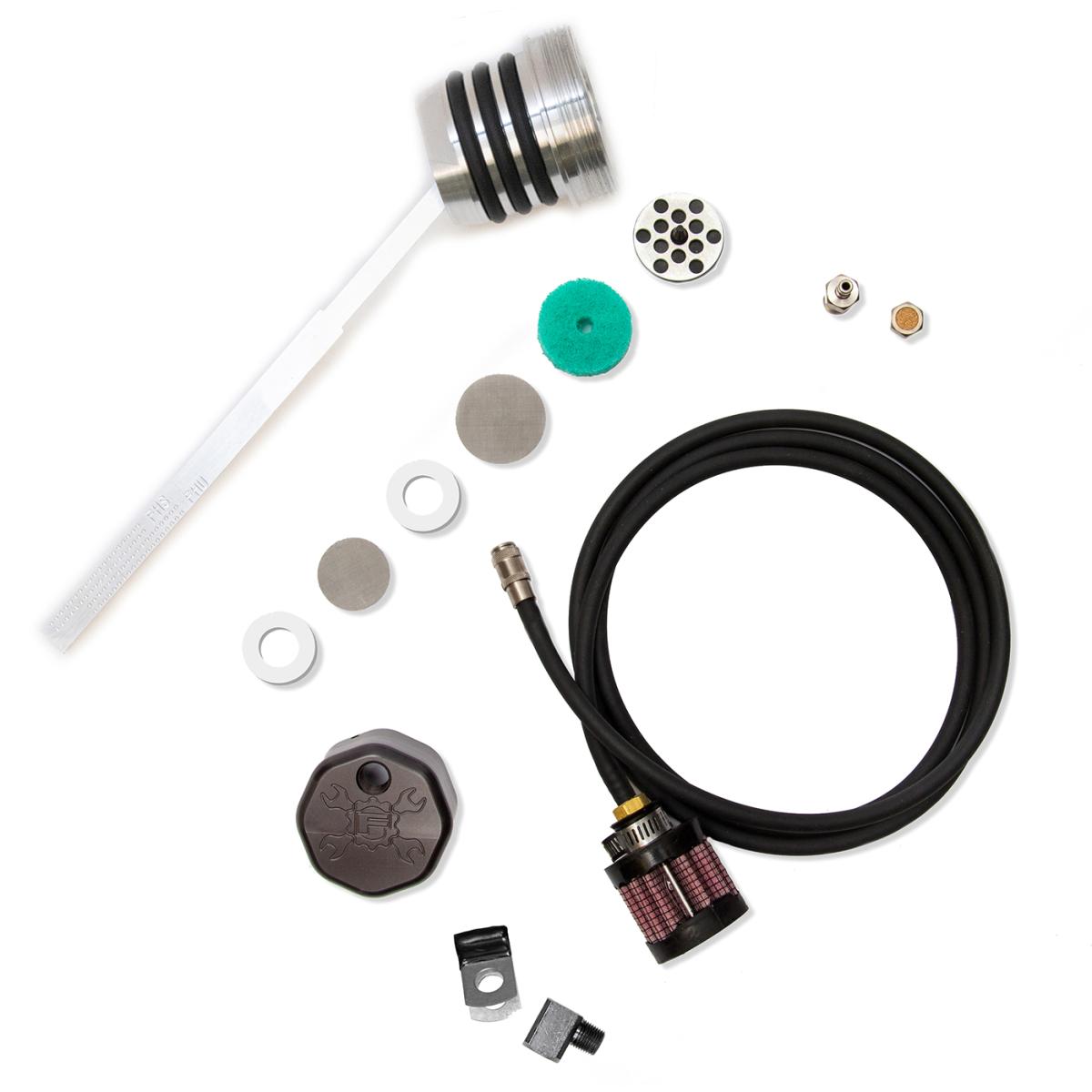 OPTION 2.) Quick disconnect coupler fitting with rubber hose and filter element. This option will run any excessive oil misting/residue through the line and into the filter element. However this option does requires disconnecting the fitting in order to check the oil. This is Feulings preferred option as it breaths more than option 1.