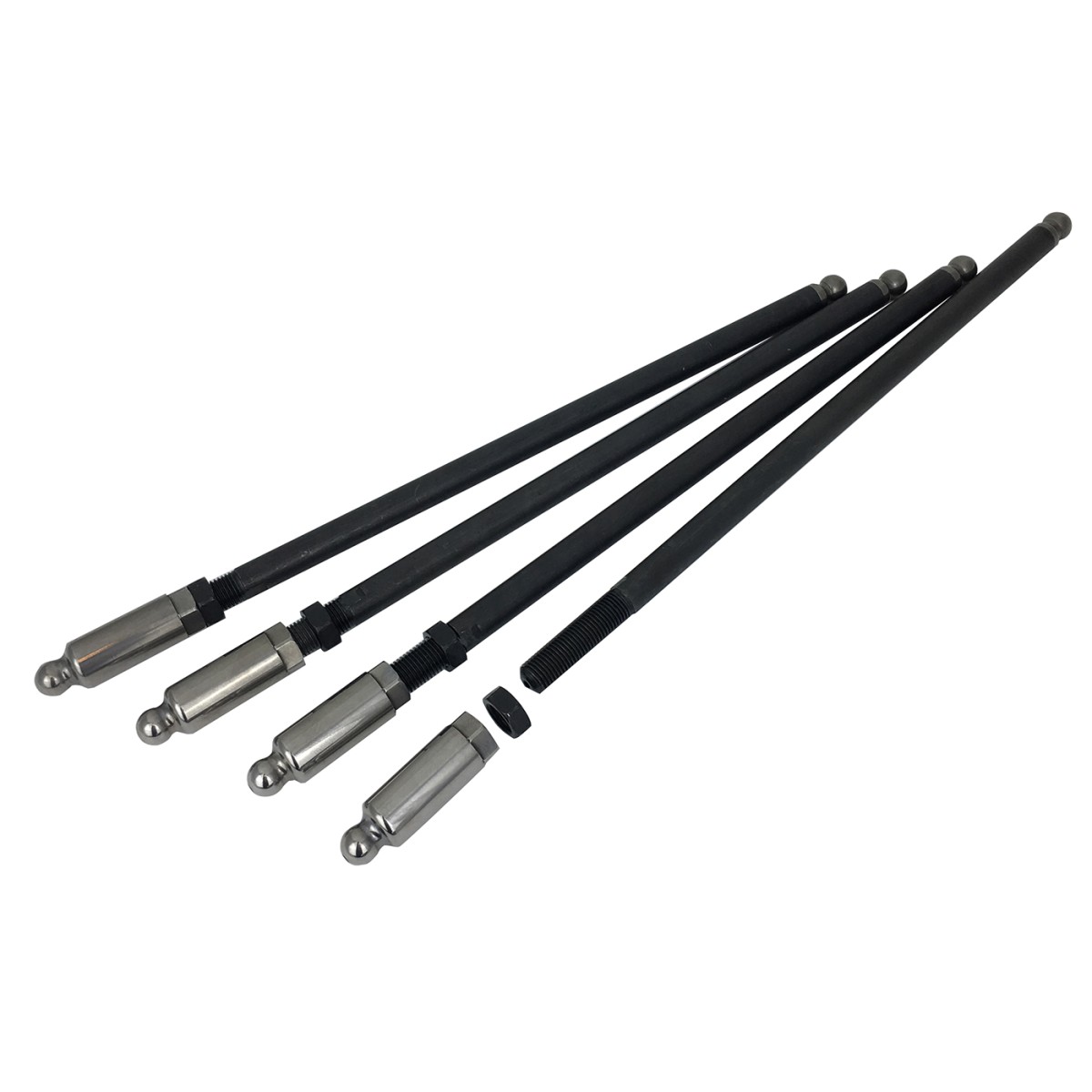 • Adjustable pushrods are tapered 3/8” 4130 chrome moly adjustable pushrods, use a minimal adjustment parameter eliminating flex and loss of valve train-stability problems associated with most adjustable pushrods.