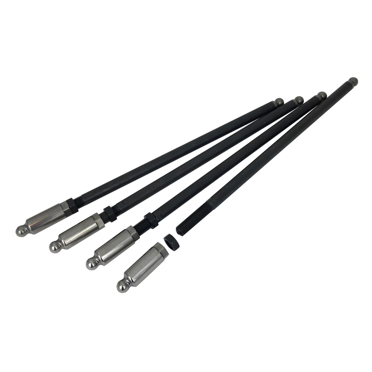 Adjustable pushrods are 3/8 4130 chrome moly tube and use a minimal adjustment parameter eliminating flex and loss of valve train-stability problems associated with most adjustable pushrods.