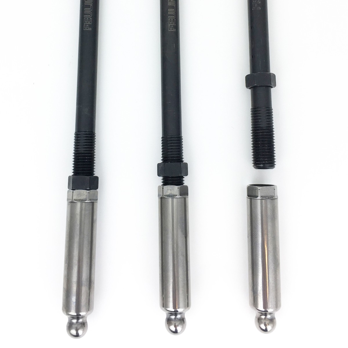 TC Quick Install Adjustable pushrods + tube kit, 3/8 OD tube, 0.134" wall thickness, set of 4 pushrods. Individual length Exhaust and Intake pushrods, Install WITHOUT the removal of rocker covers, requires quick install tubes - see Feuling #4095 for tubes only or Feuling #4097 for pushrod + tube kit