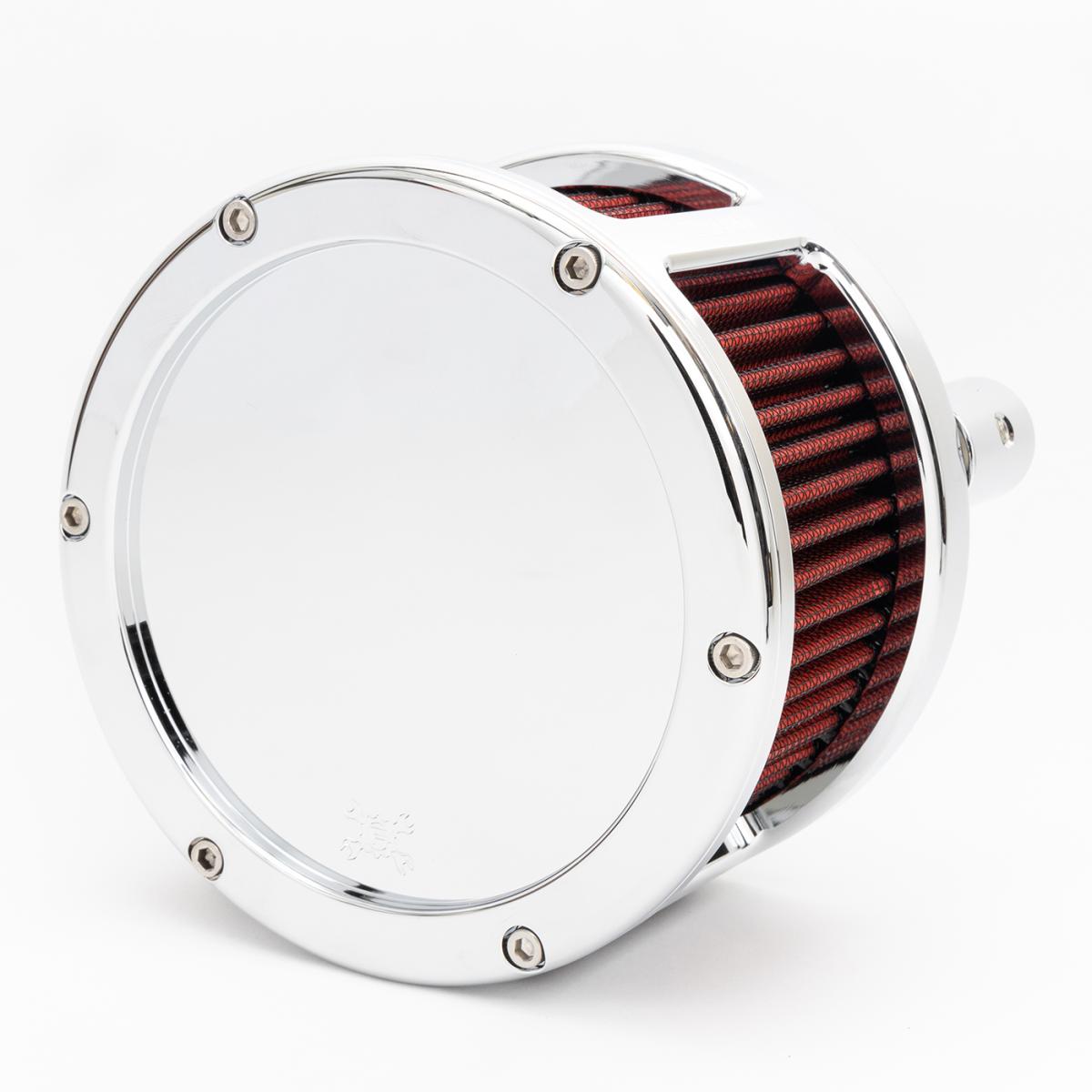 BA Race Series Air Cleaner Kit, M-Eight RACE SERIES tall cage, Chrome finish, Solid Cover, Red filter - Requires mid foot controls