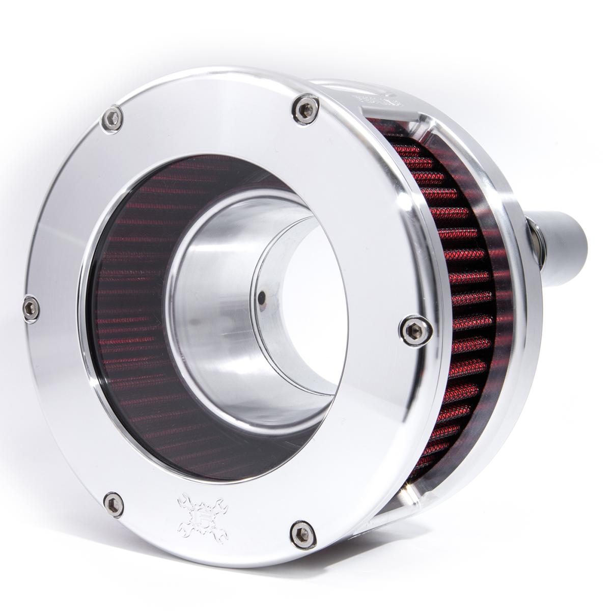 With years of experience designing improved cylinder heads, ports, combustion chambers and intake manifolds, brings light to a new bolt-on air cleaner design for Harley-Davidson motorcycles. The Feuling BA air cleaner lengthens the intake and delivers increased velocity and volume into the intake track.