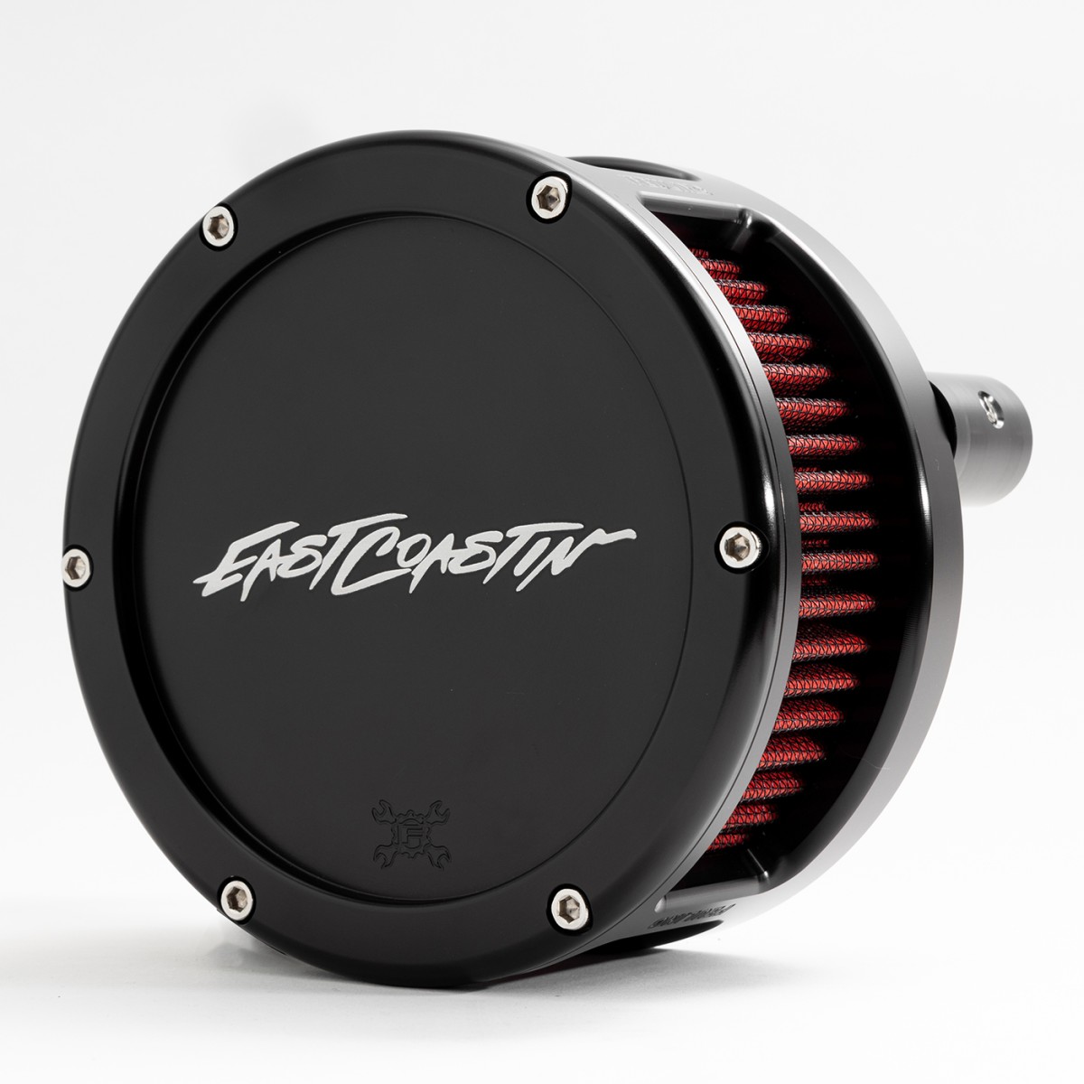 Available in raw, black, or chrome finish, solid or clear cover and red or black filter element.
