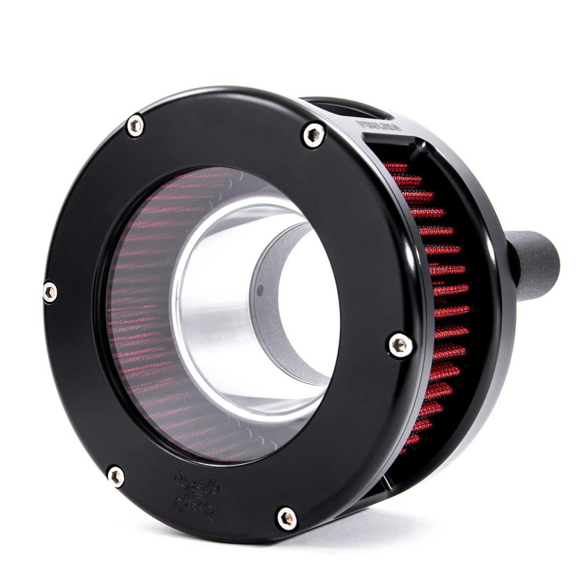 BA Air Cleaner Kit, M-Eight, Black Anodized finish, Clear Cover, Red filter