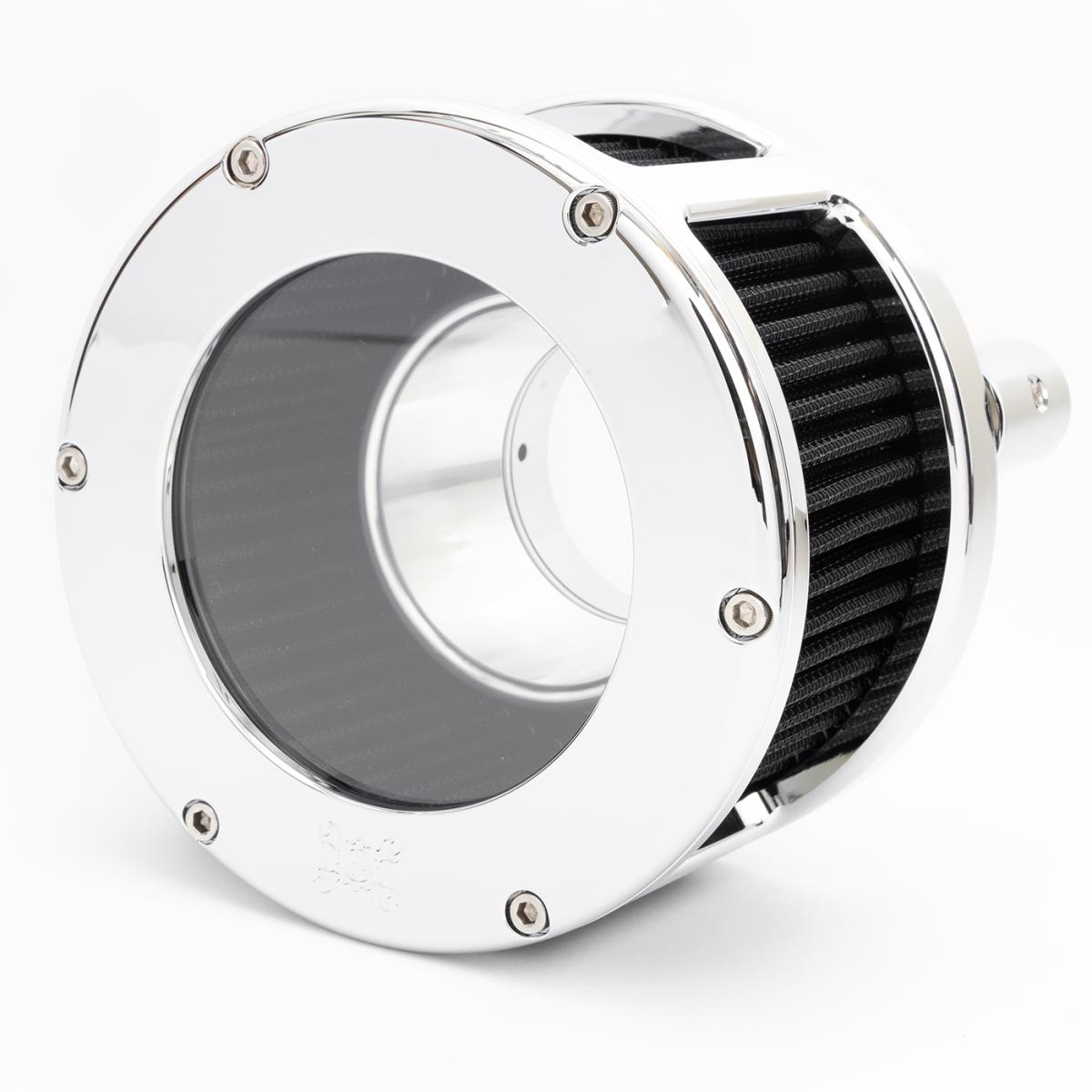 BA Race Series Air Cleaner Kit, M-Eight RACE SERIES tall cage, Chrome finish, Clear Cover, Red filter