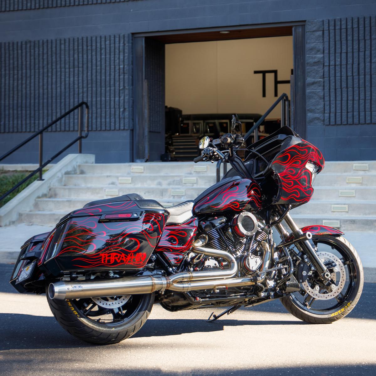 Hand Crafted, Stainless, Tuned Length, 2 into 1 high performance exhaust system for Milwaukee Eight Touring models. Triple stepped 1 ¾ to 1 7/8 to 2 with large 2 ¾ collector exit and stepped 2 ¾ to 2 7/8 dogball muffler core, normal length exhaust with end cap extended past saddlebags. Works with both extended and standard HD saddlebags. Matches with Pseudo pipe #5904