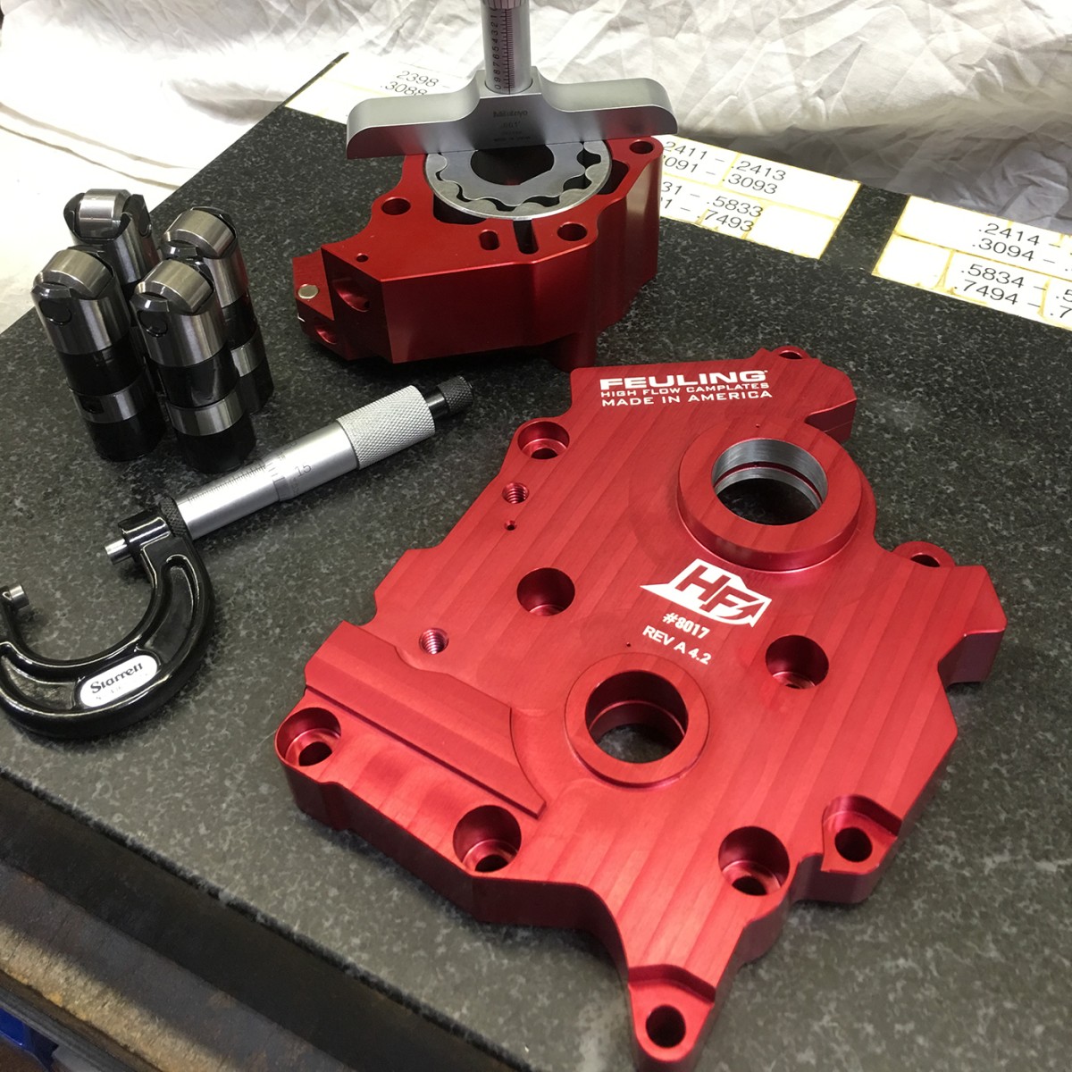 RACE SERIES® kits include FEULING'S® HIGH FLOW billet camplate made from 7075 aluminum which is 50% harder and stronger than the factory camplates. FEULING® increases oil flow and volume by enlarging the oil pump reservoirs and critical oil passages including matching the oil port holes throughout the camplate to the port holes in the engine case which increases engine oil flow to the lifters, piston cooling jets, crankshaft and rod bearings.