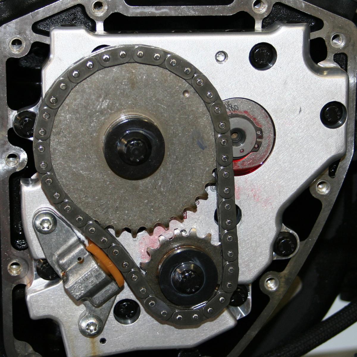 Requires the purchase of factory hydraulic chain drive tensioners and needed hardware. *99-01 engines with Magneti Marelli ignition utilize the stock outer silent chain and rear cam sprocket or will require separate purchase of Andrews sprocket # 216015 which will allow use of the 07-17 style roller chain.