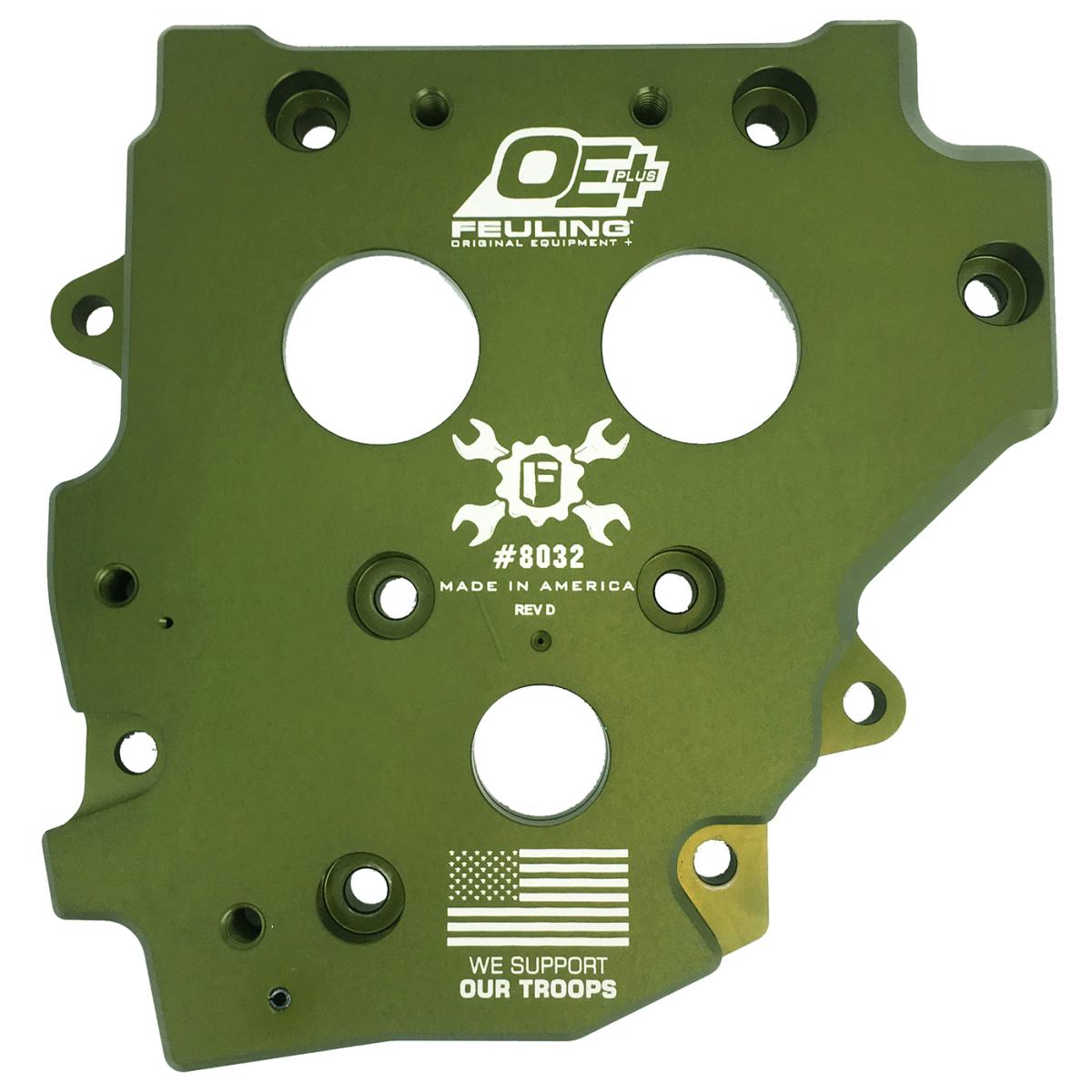 FEULING OE+ stock replacement billet camplates are manufactured from 6061 aluminum providing increased rigidity and machined to FEULINGs high tolerance standards. The pressure relief valve and spring are pre-set, matched and seated by FEULING with a full pop off pressure of 50-60 psi. OE+ camplates are a direct bolt in replacement and will accept the factory oil pump. As with all FEULING components, the competitively priced OE+ camplates are designed and manufactured to the highest standard of quality with proven FEULING performance.
