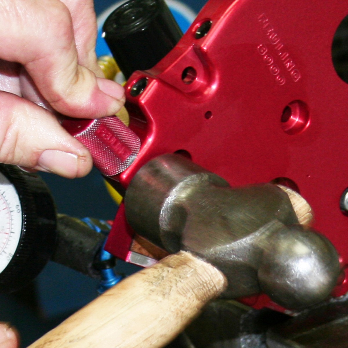 This tool makes for easy removal and installation of the pressure relief spring, by-pass valve and roll pin in the Twin Cam camplate. The tool is used to hold the relief spring down and away from the roll pin. Fits all Twin Cam® engine camplates