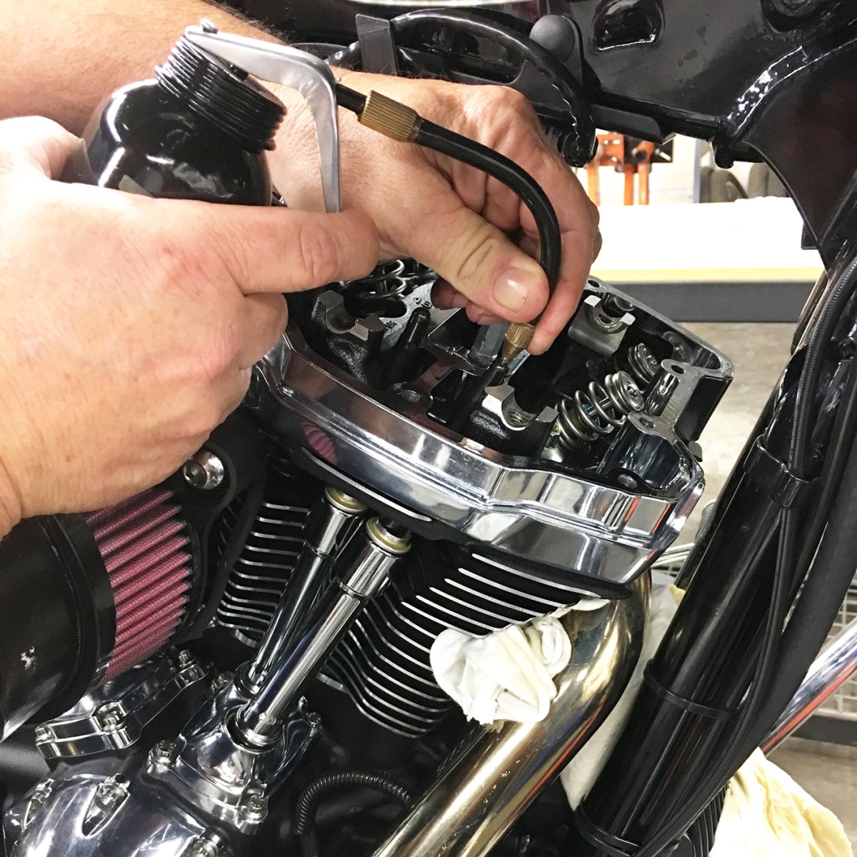 This tool easily pumps up hydraulic lifters, using thin 5 or 10 weight motor oil or automatic transmission fluid to pump oil into the lifter side feed hole to push all of the air out of the lifter internals. You will see air bubbles come out the top pushrod seat hole, It's best to work the oil back and forth from the side feed hole and back through the top pushrod seat hole to work all the air out. This will ensure the lifter is fully pumped up and will not run dry on initial start up.