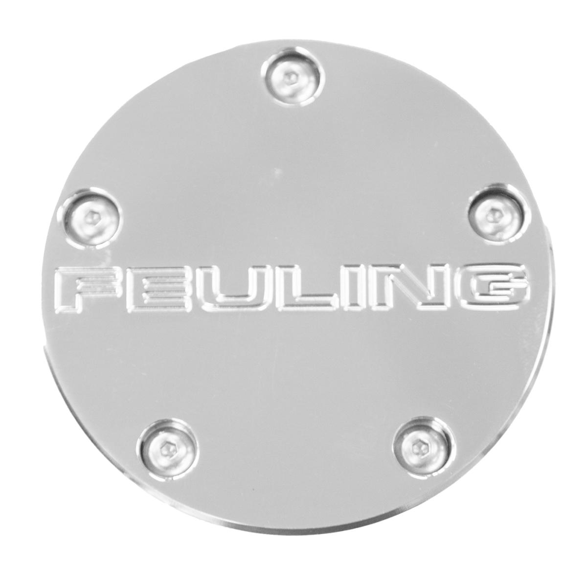 Dress your engine in style with a FEULING points cover, machined from billet 6061 aluminum, bolts onto the factory cam cover, includes new stainless steel button head fasteners. Available in select finishes and logos, made in the U.S.A.