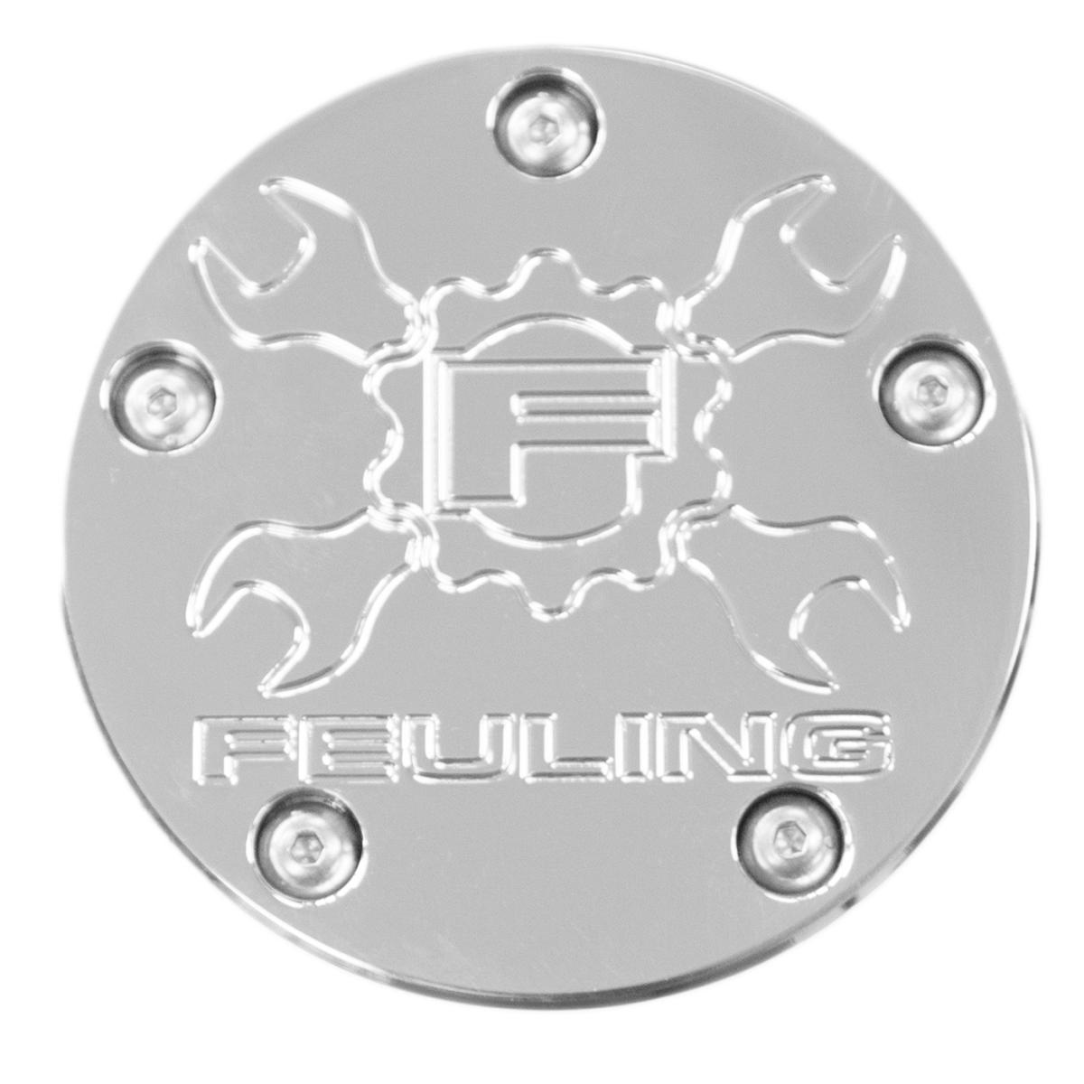 Dress your engine in style with a FEULING points cover, machined from billet 6061 aluminum, bolts onto the factory cam cover, includes new stainless steel button head fasteners. Available in select finishes and logos, made in the U.S.A.