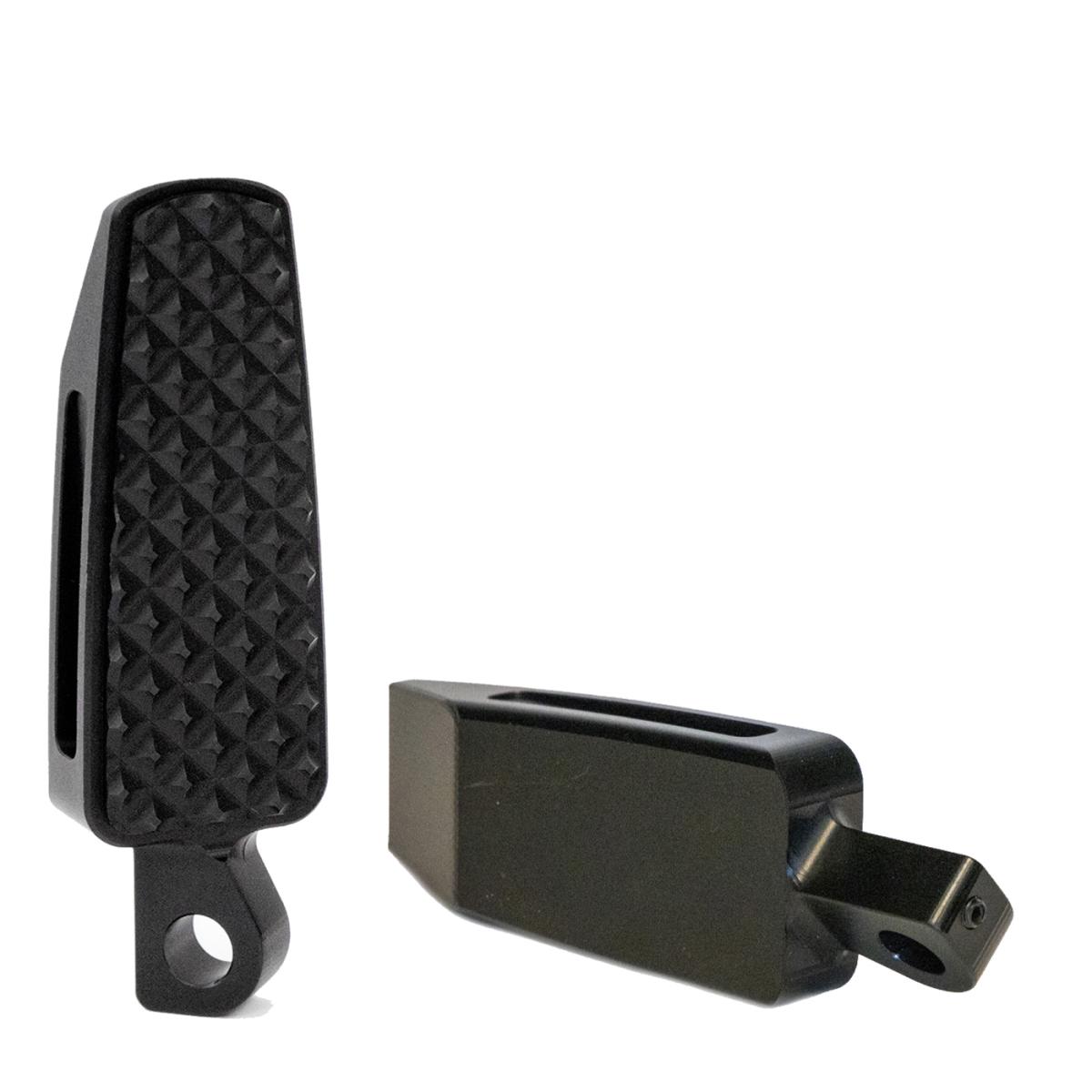 Billet 7075 aluminum foot pegs with a slim design and great grip, angle cut for increased ground clearance. Anodized with fade resistance black. Adjustable set screw allows rider to set the angle of the peg. Size 3.500 x 1.300